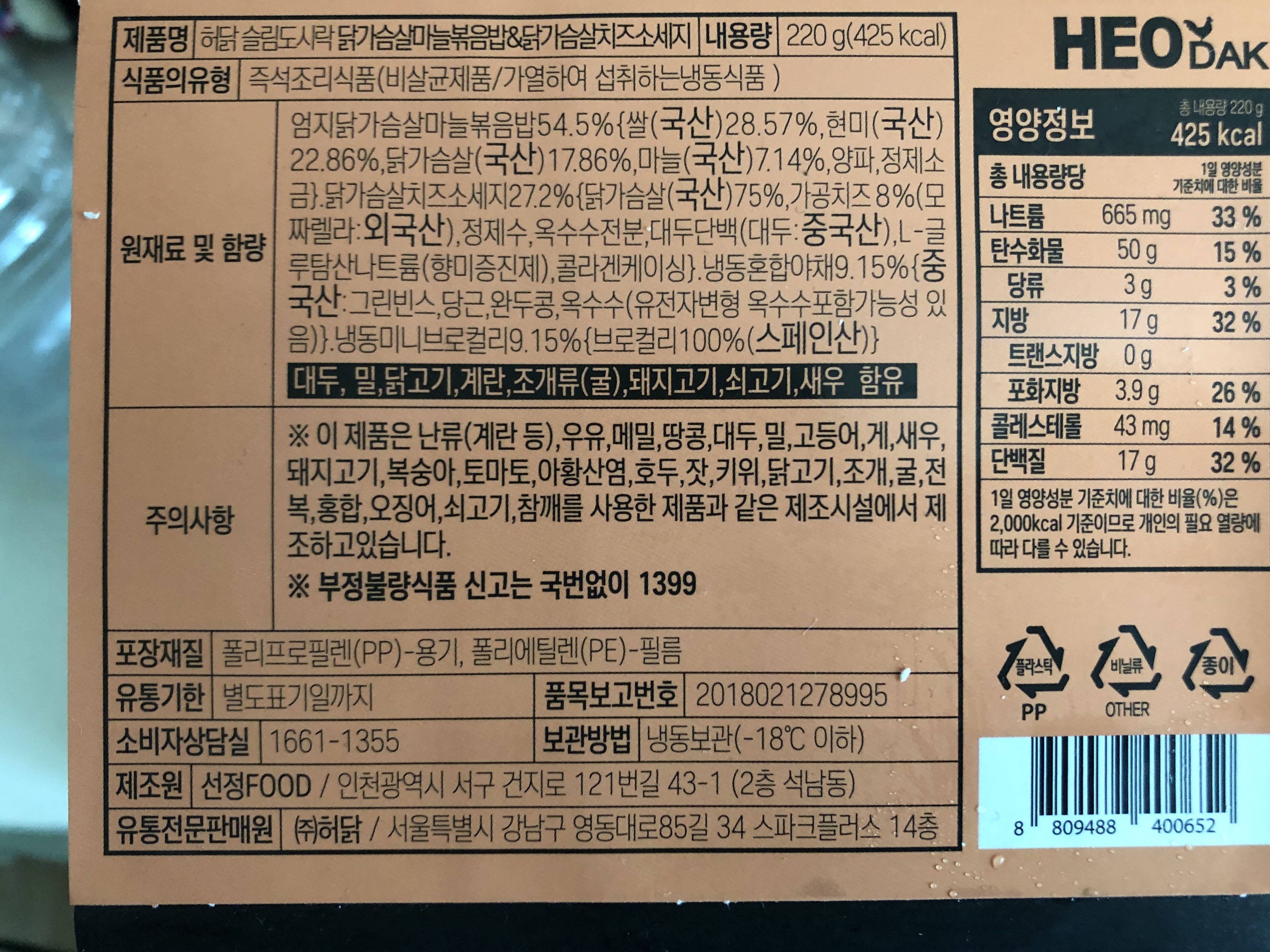 그런데 허닭 도시락은 꽤 영양균형도 좋고 맛도 좋다고 해서 10개를 대량구입
