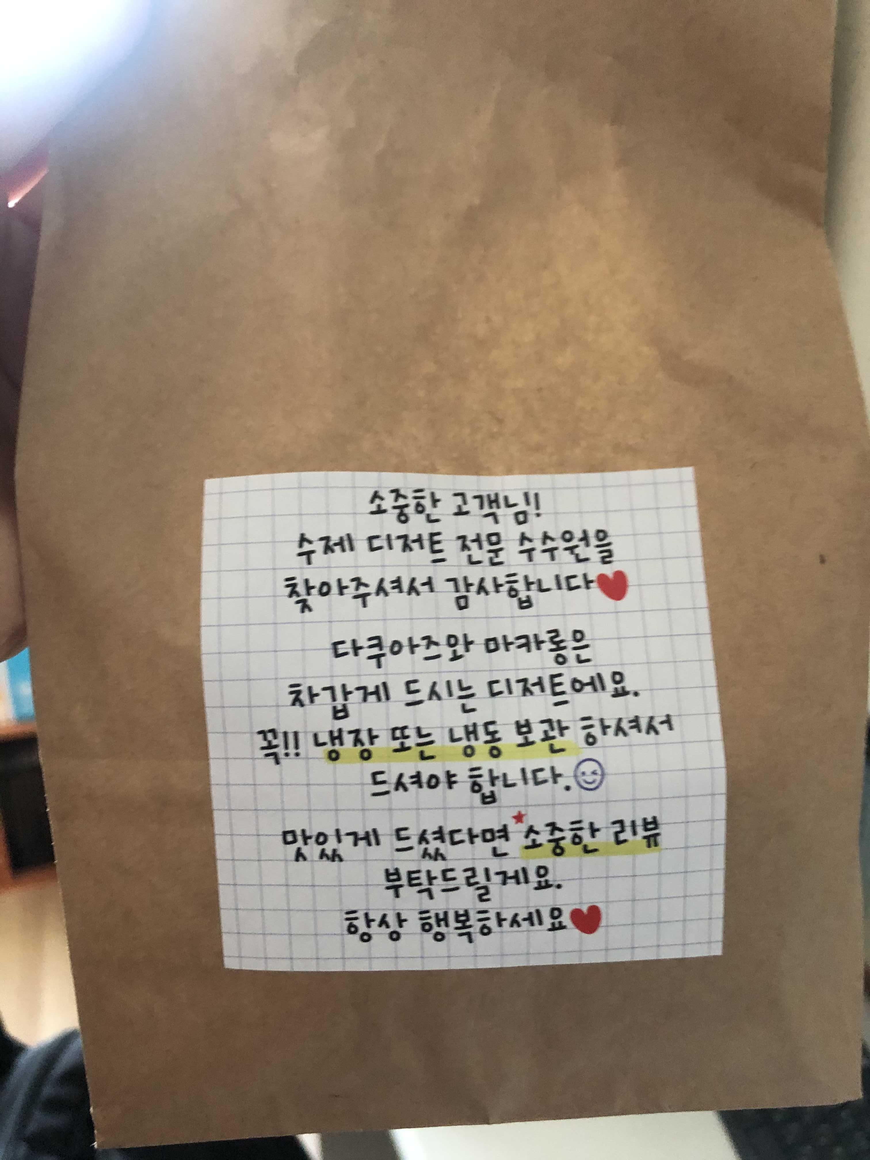 대체로 마카롱보다 다쿠아즈가 훠어얼씬 맛있고 가게에서도 더 자신있게 권하는 느낌.