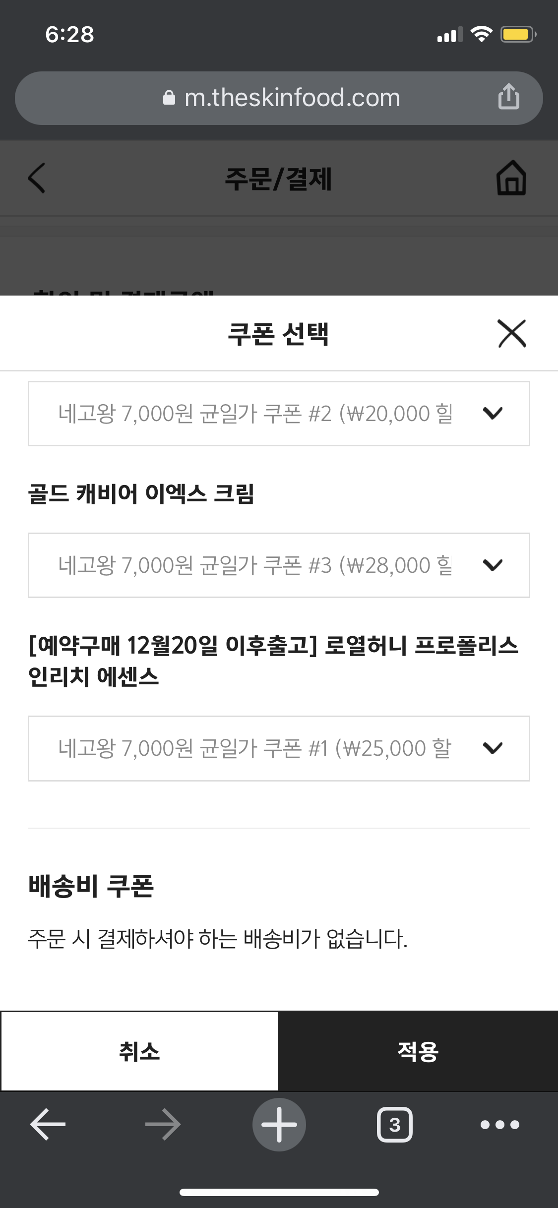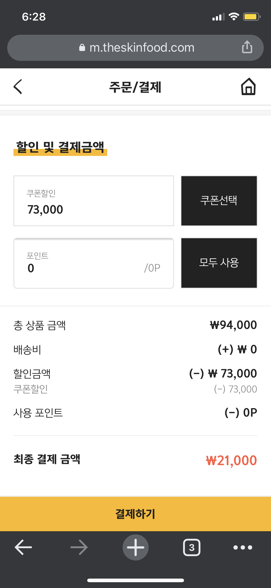 동일한 제품 3개를 구매시에는 쿠폰이 하나만 적용되는 것 같다. ☝🏻