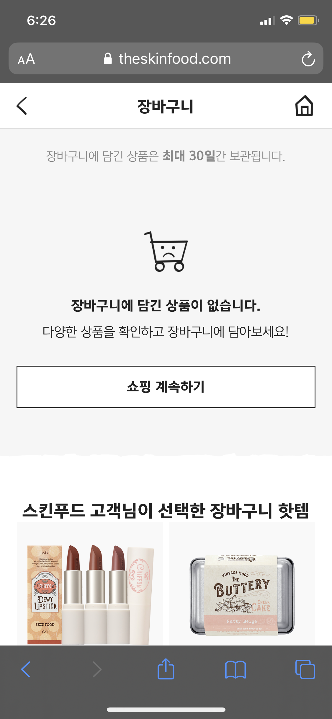 또 장바구니에 제품이 사라지는 경우!!!!!!