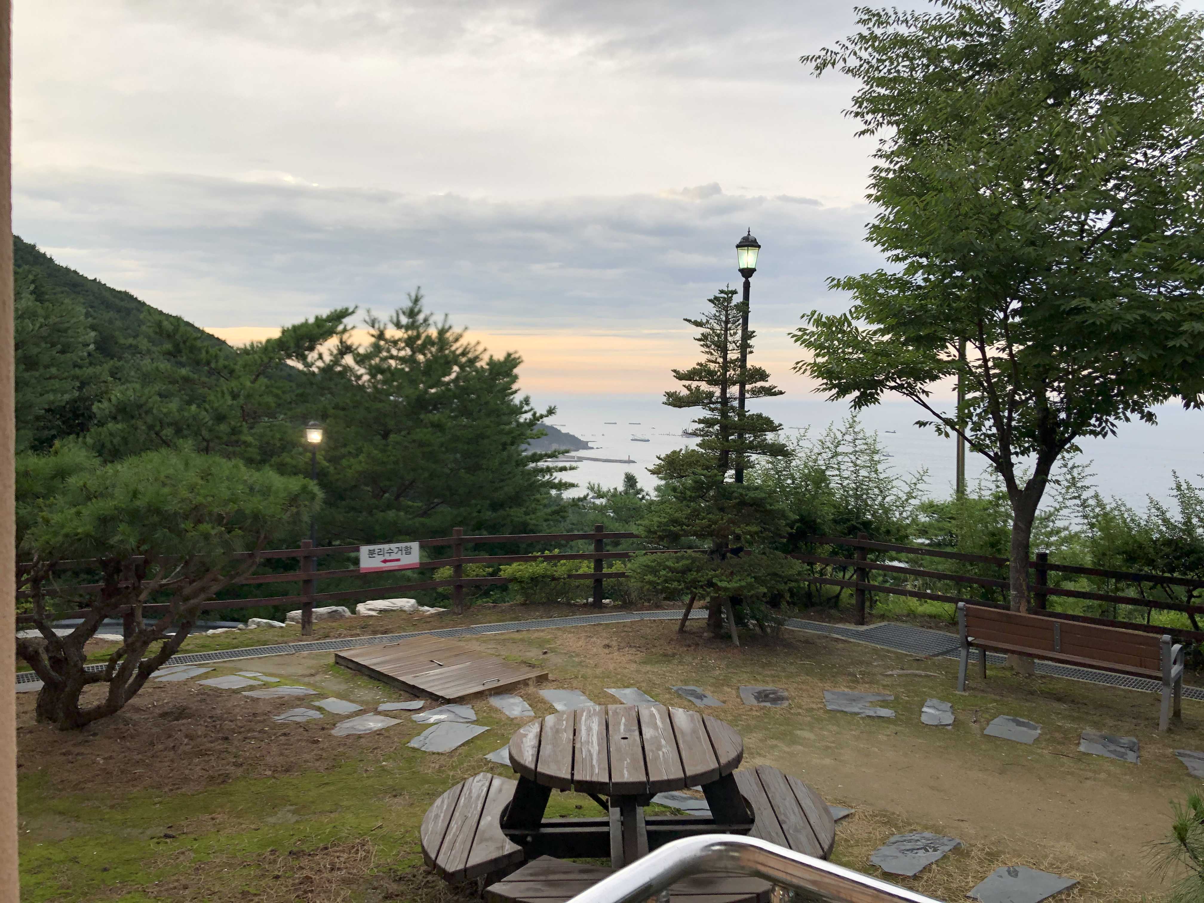 바다와 하늘과 숲이 한 씬에 다 들어오는 절경이었당