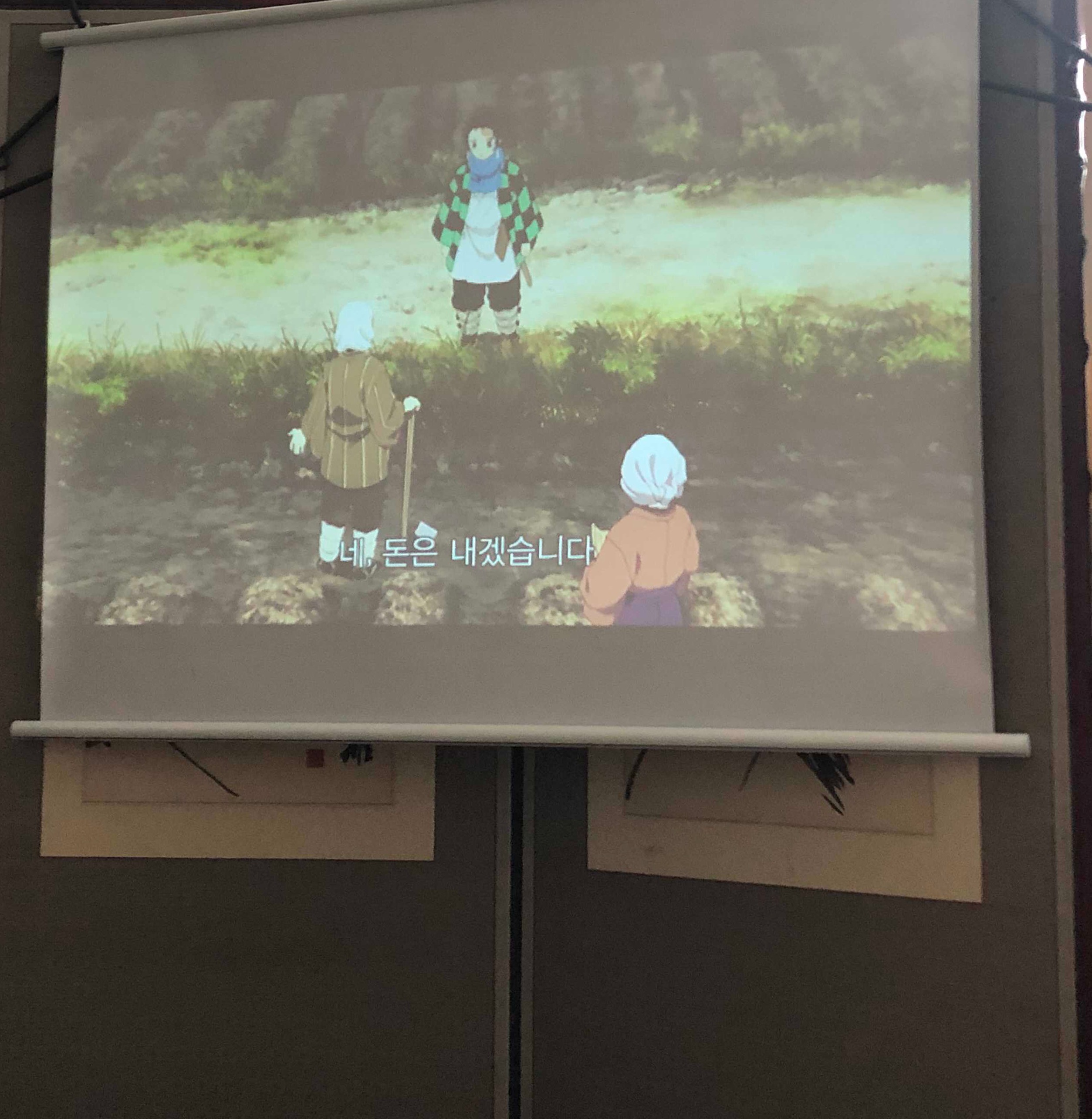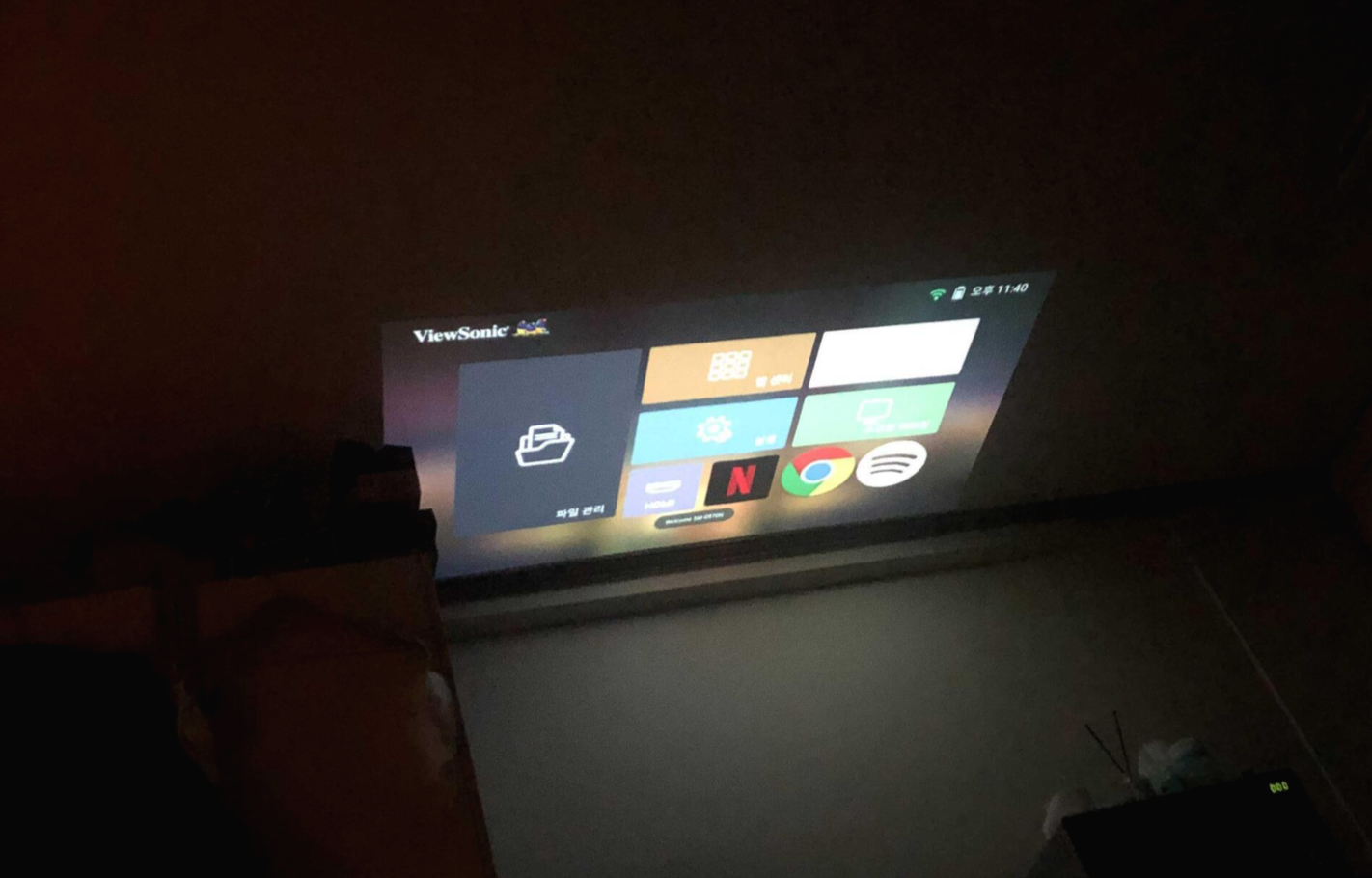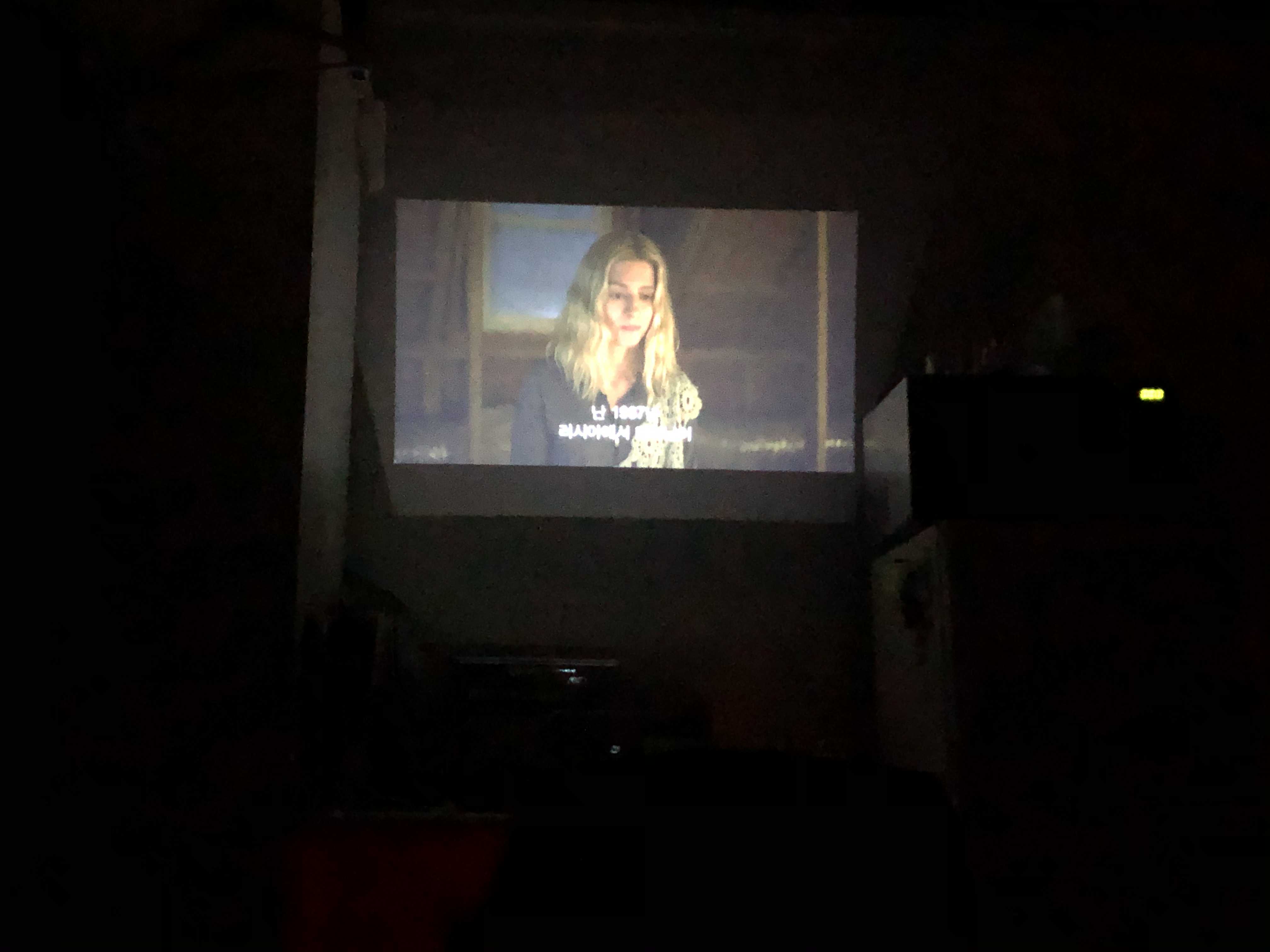 한 3-4시쯤? 이었는데도 화질이 꽤 나온다! (원래 빔프로젝터는 깜깜할떄 더 잘보임)