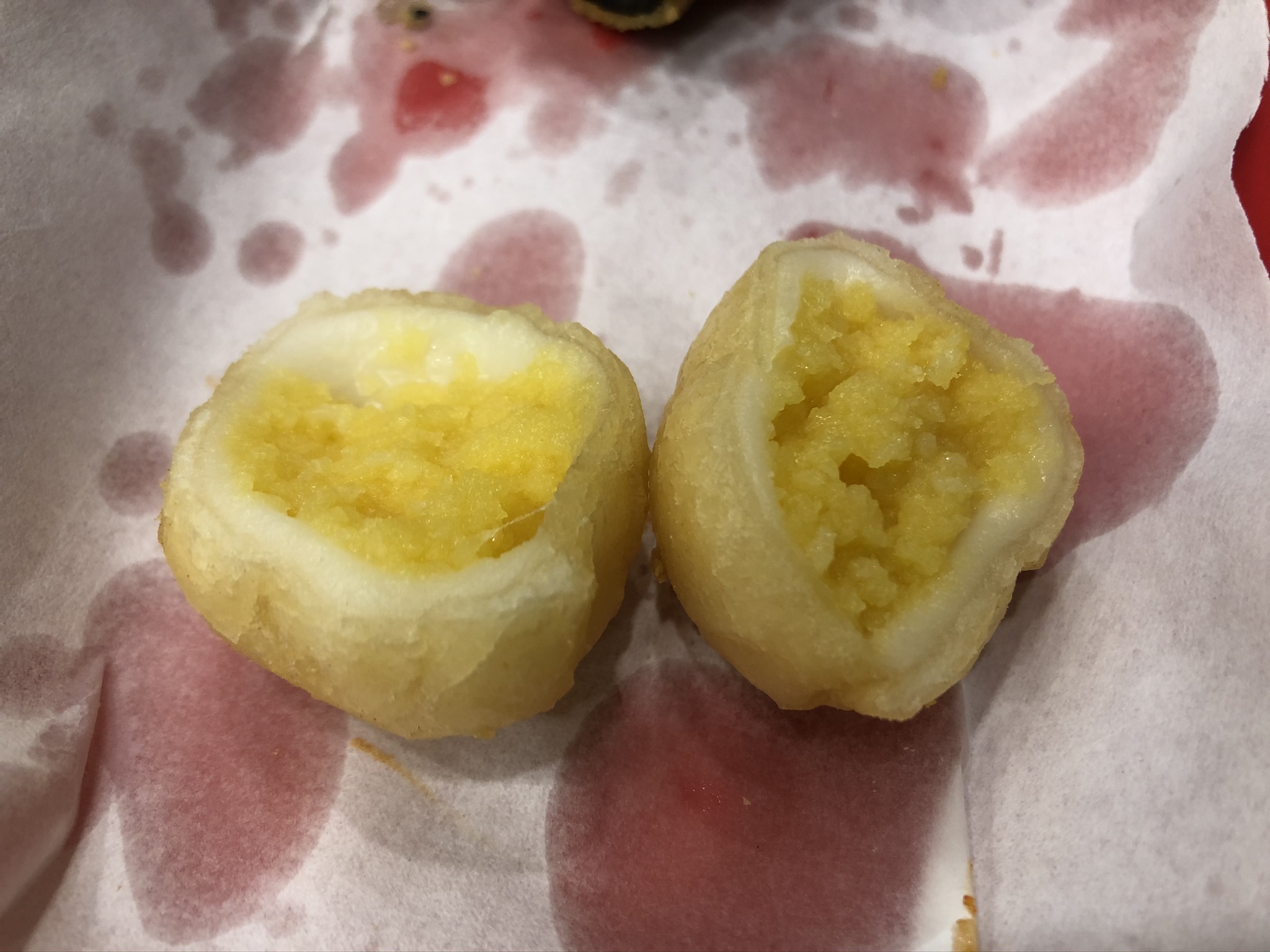 신전의 고구마 치즈볼 슬쩍 잘라보는데 진짜 고구마 실하게 들어있고....