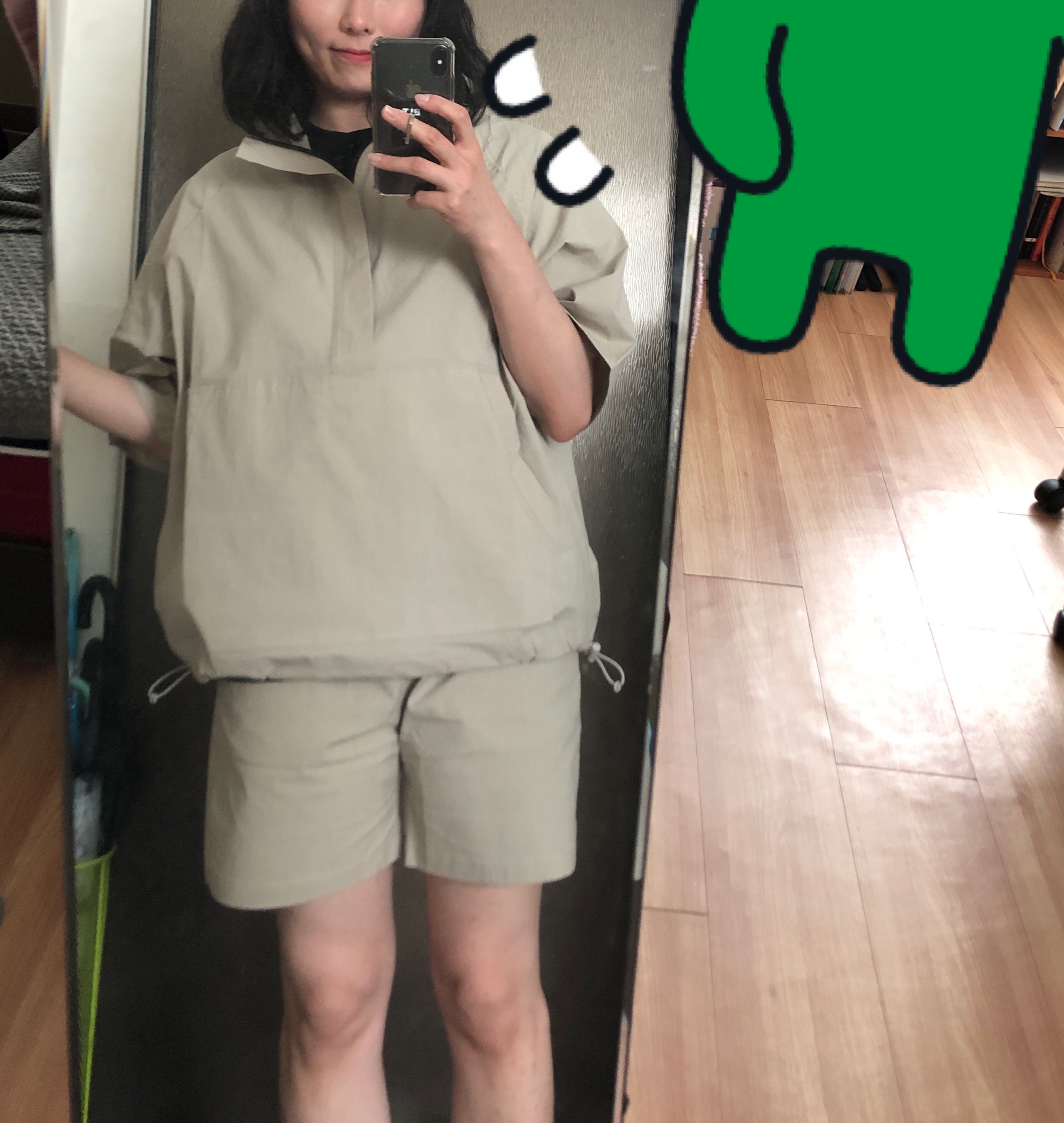 반팔셋업, Smoke Beige 상의 M, 하의 S를 구매했고, 잘 맞았음!