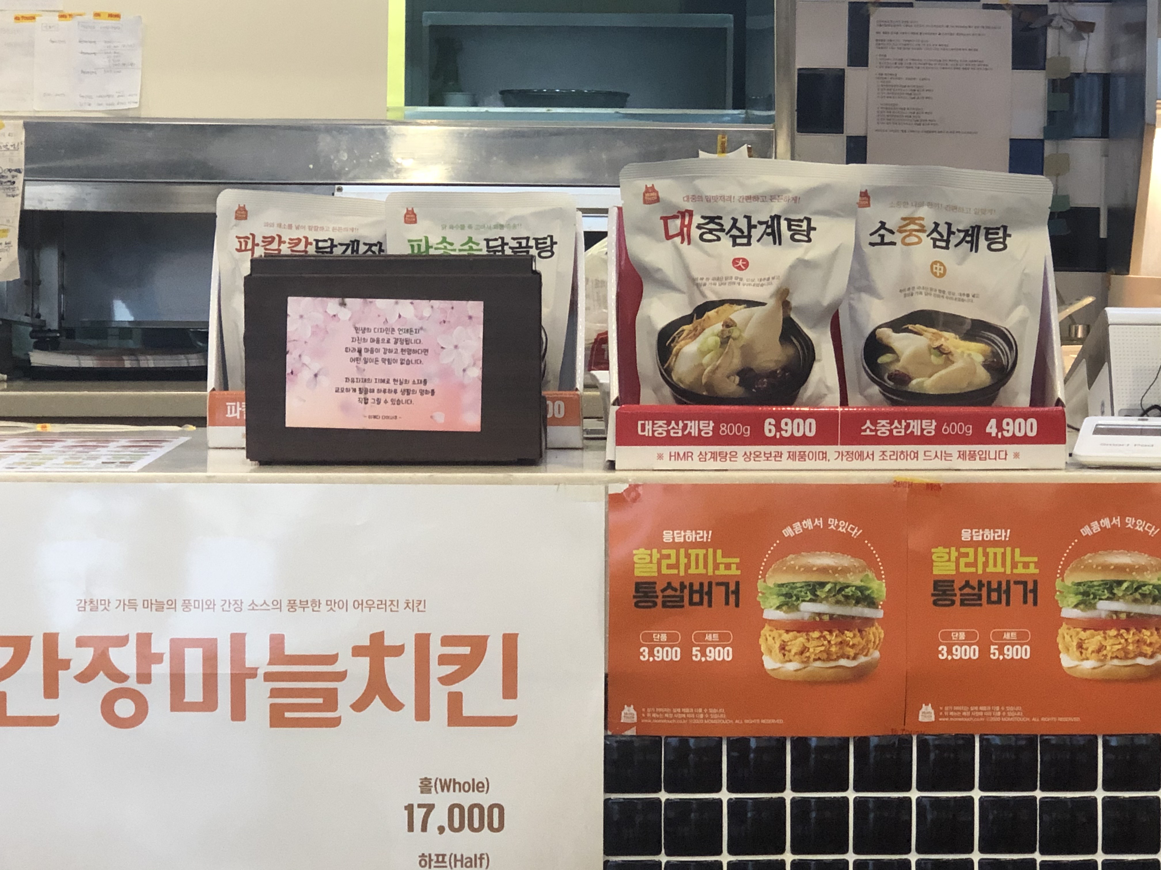후라이드, 양념, 간장치킨, 닭강정 등 다양한 종류가 있어서 치킨 한마리만 구매해 가시는 분들도 많이 봤다.