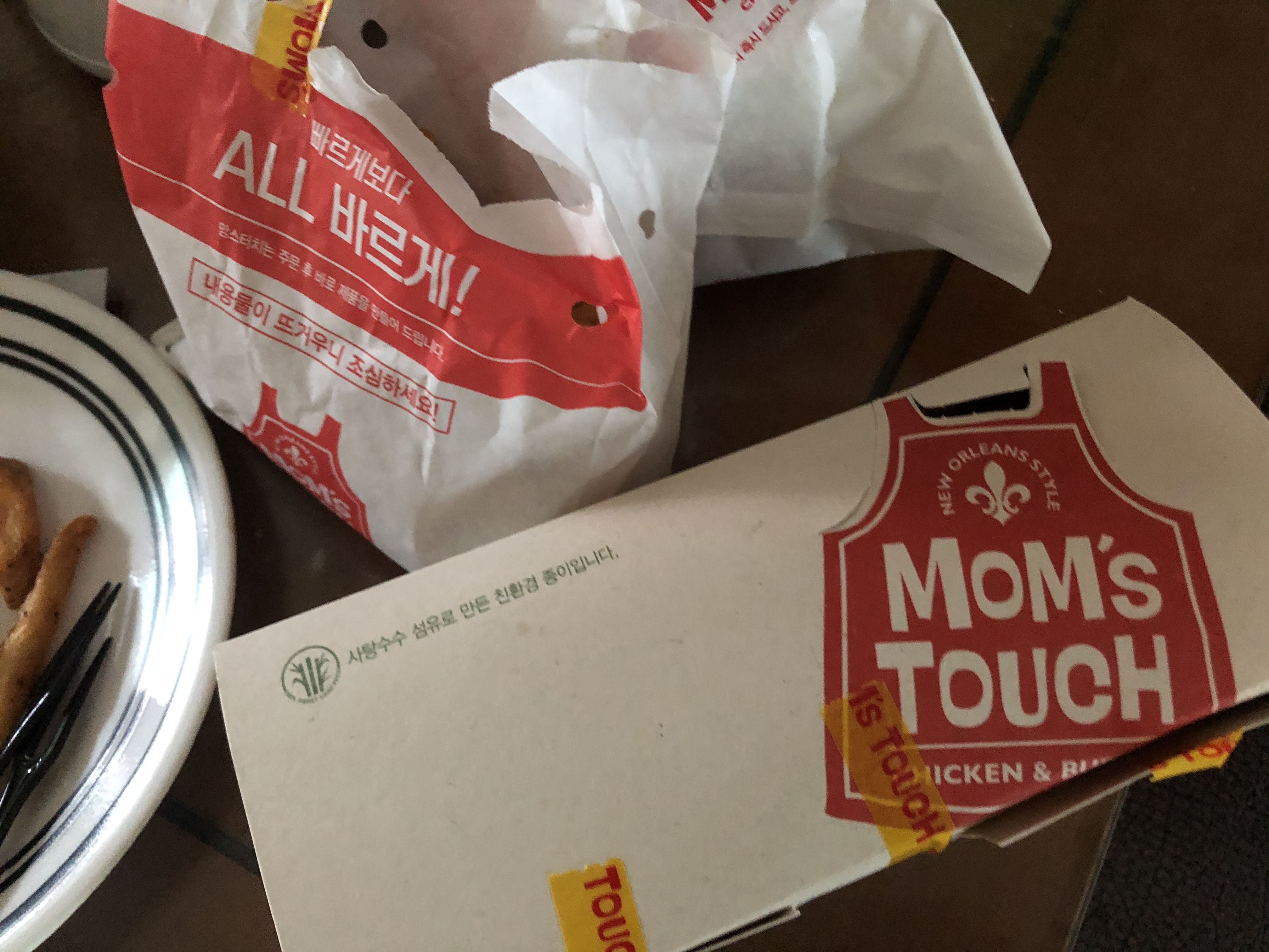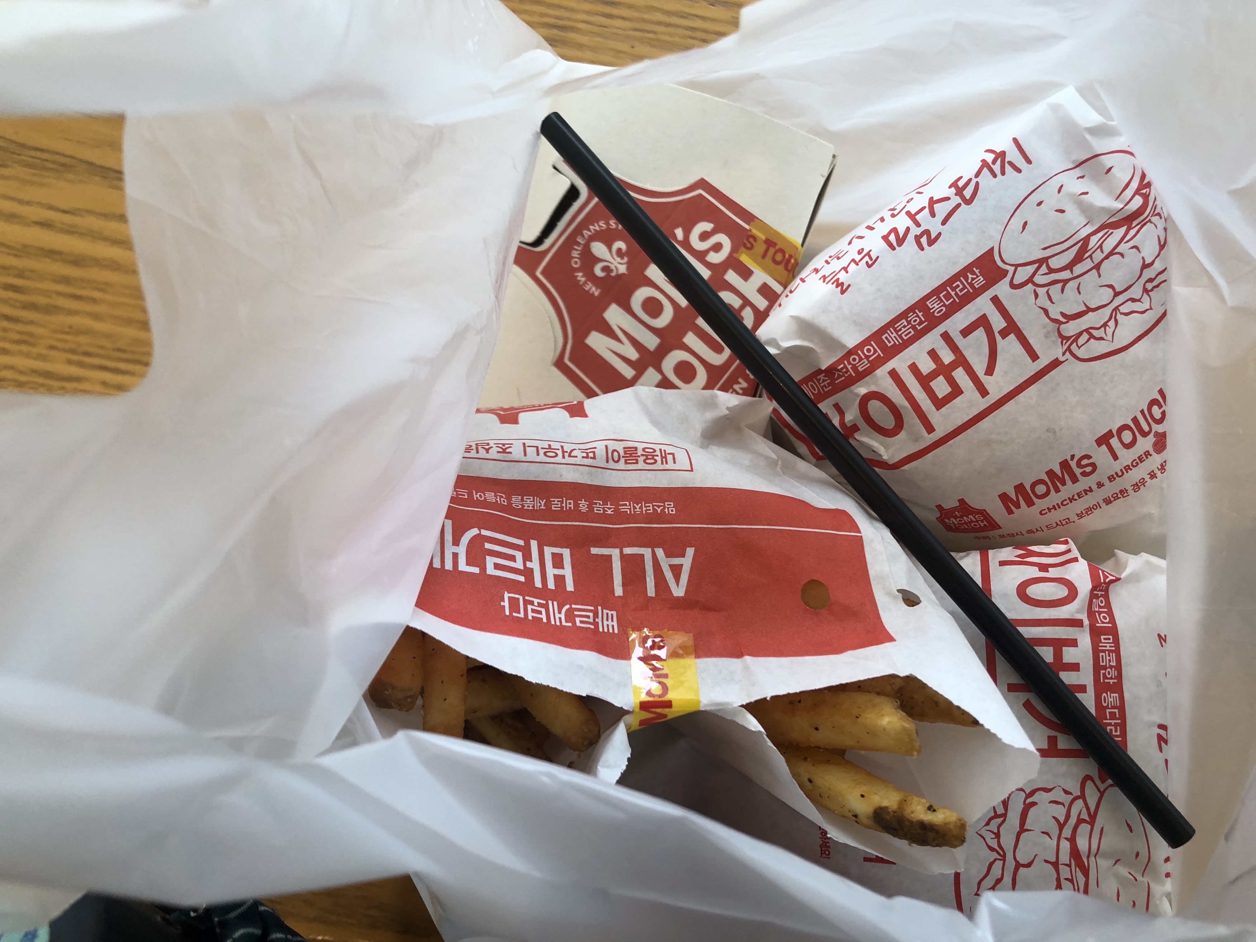 맘스터치는 미리 버거를 만들어놓지 않고, 주문이 들어오면 바로 만들고 튀기기 때문에 좀 걸리는듯.