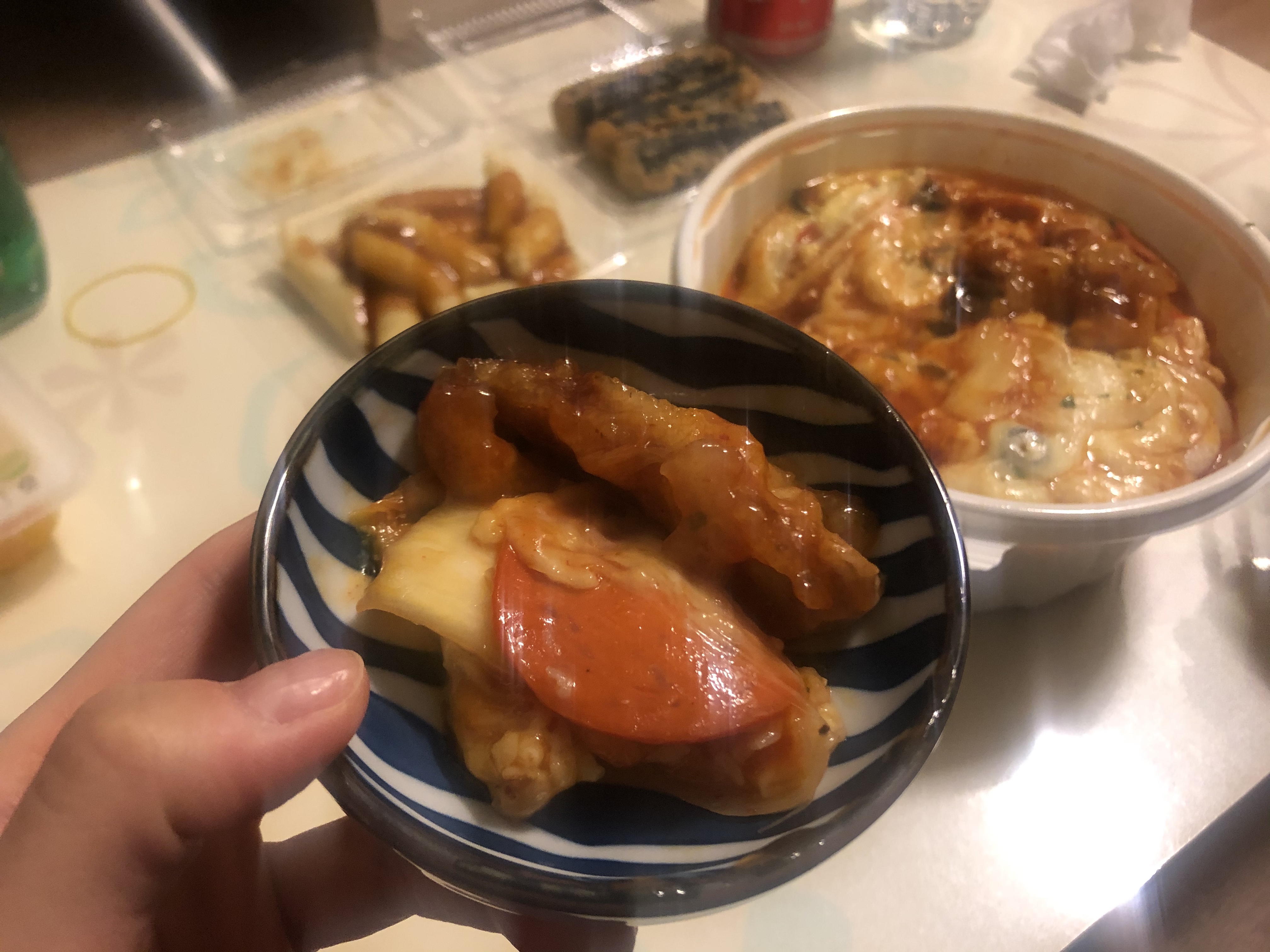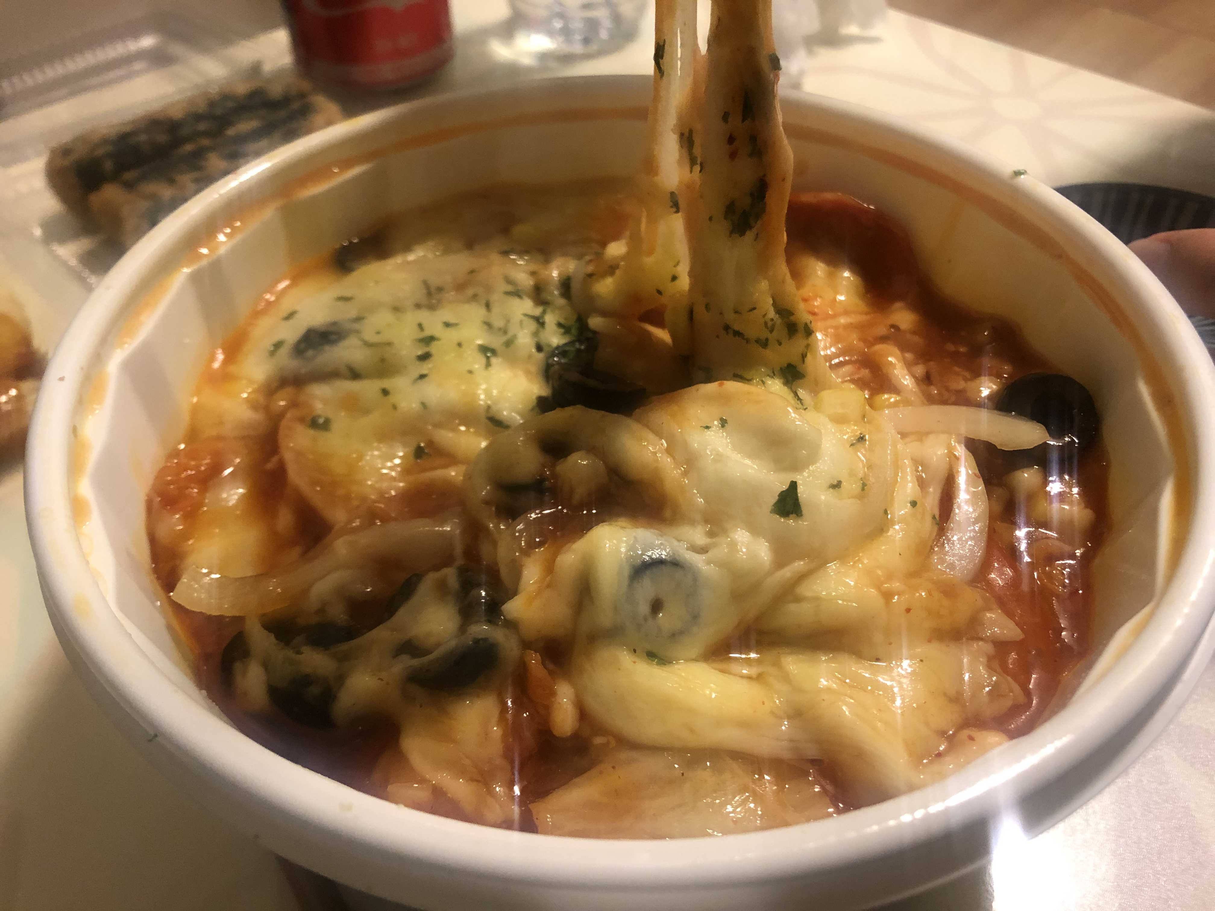 2. 치즈와 양파, 피자토핑 올리브와 페퍼로니 따위와 찹쌀탕수육이 왜 이렇게 잘어울리지....?! 도우가 필요없는 피자 도우도 그냥 그릇이었을뿐 한국에선 고기가 그릇을 대신한다